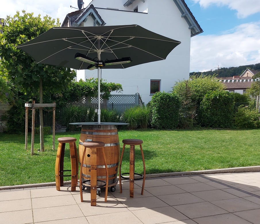 Unsere Weinfassmöbel sind ein echter Hingucker und eine großartige Ergänzung für jeden Raum, egal ob Küche, Esszimmer oder Wohnzimmer. Besonders hervorzuheben sind die Modularität unserer Stehtische, die individuell zusammengestellt werden können, ein integrierter Tischkamin, ein passender Sonnenschirm für den Outdoor-Einsatz und die Möglichkeit, die Möbel in einer Gastronomie oder Straußwirtschaft einzusetzen.