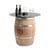 Nach dem Schleifen der Fassoberfläche und satinieren der Fassringe wird die Oberfläche des Fasses mit Hartwachsöl behandelt. Dies macht es wasserabweisend und atmungsaktiv - also geeignet für den Outdoor-Einsatz. Anstatt das gebrauchte Fass auseinanderzunehmen und dessen Charakter zu zerstören, verschrauben wir lieber die Fassringe mit jeder einzelnen Daube. Dies bedeutet mehr Aufwand, das Fass bleibt allerdings dafür auch nach dem Trocknen stabil.