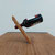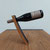Der Flaschenhalter steht stabil auf seinem Fuss. Die schräg nach unten gefräste Daube hält die Weinflasche an Ort und Stelle. Dieser Halter dient zur professionellen Präsentation von edlen Weinen auf Messen, in Vinotheken oder auf Weinproben.